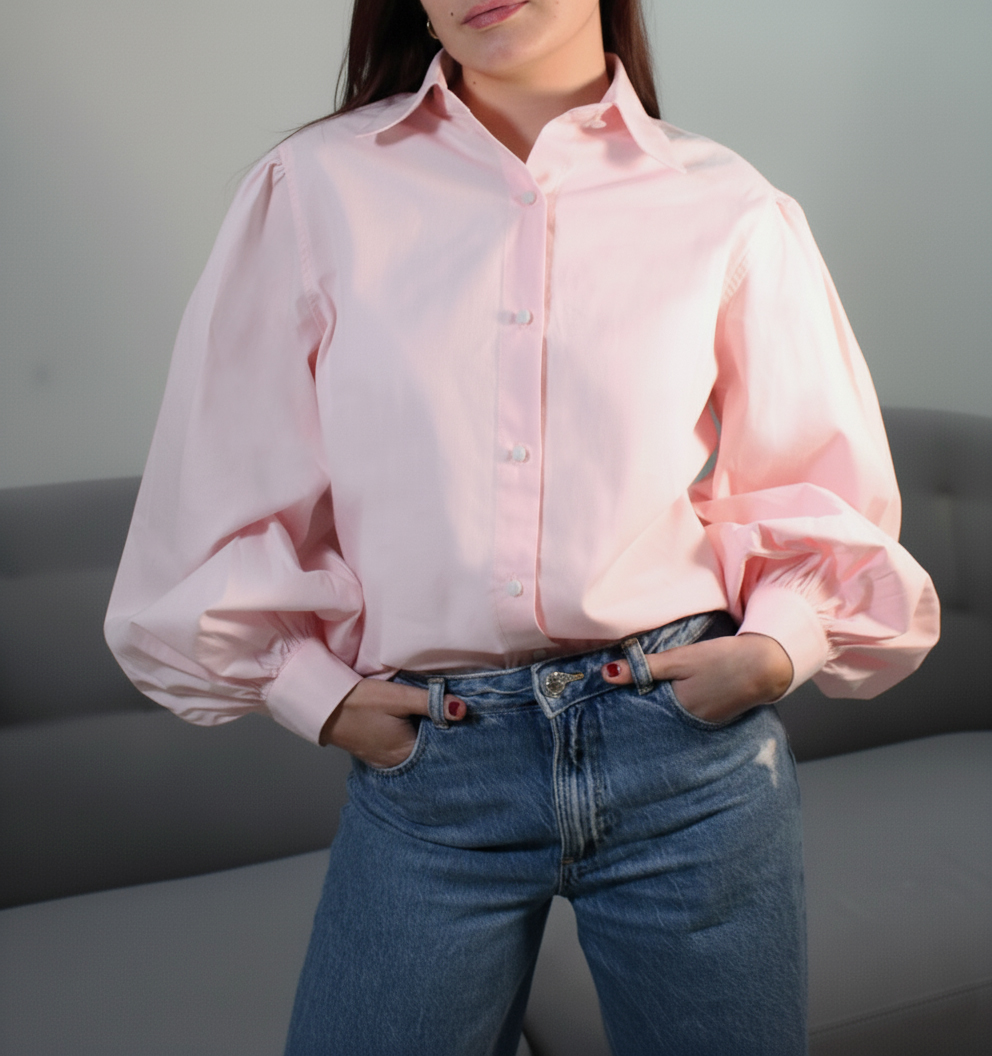 & Free ShippingUna camisa clásica reinventada. Confeccionada en algodón, presenta un diseño de manga larga con volumen y abertura en el puño, que aporta un toque sofisticado. Su corte recto y cuello camisero la convierten en un básico atemporal, ideal para oficina o eventos casuales.